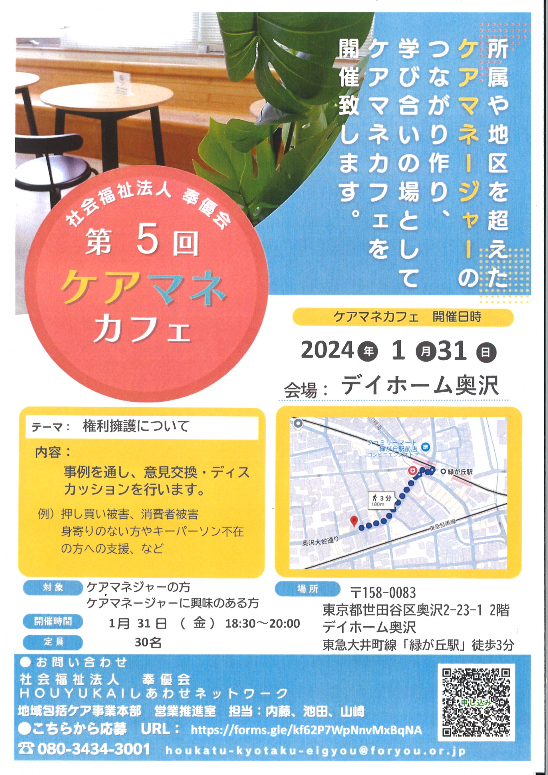 2025.01.27 お知らせ 【中野居宅】第5回ケアマネカフェ Tweet シェアする 第5回ケアマネカフェを開催します。世田谷区奥沢にお近くのお住いのかたやご興味のある方 お立ち寄りください!(M.I) 前の記事 2025.01.29 お知らせ 【中野居宅】事例研究発表会 次の記事 2025.01.23 お知らせ 【中野居宅】包括・居宅 主マネ・ケアマネ委員会の事例検討会 一覧へ戻る