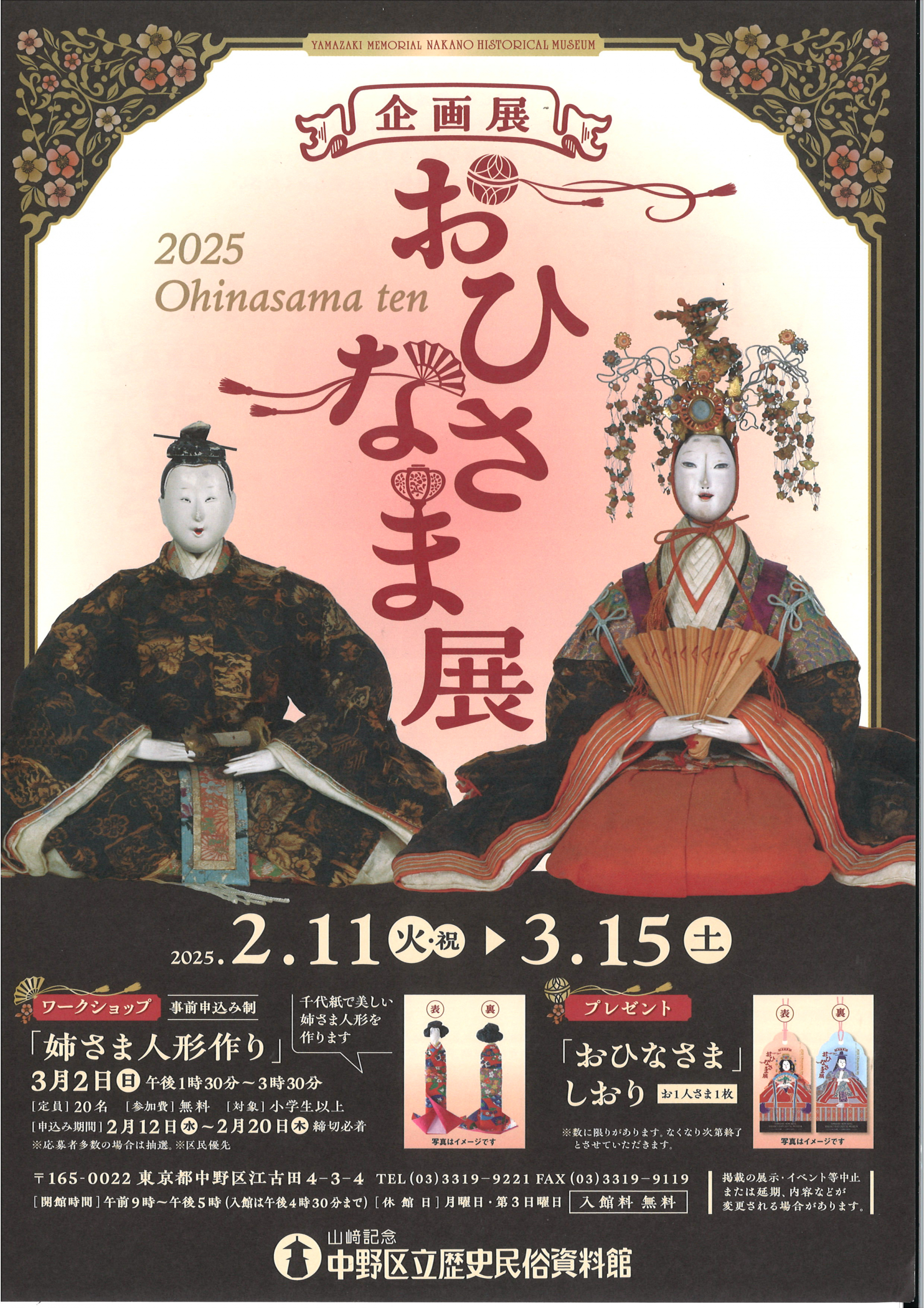 中野区立歴史民俗資料館にて「おひなさま展」を開催するそうです。