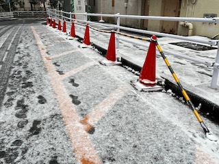 週明け、歩道や道路には雪が残り凍って滑りやすいです。