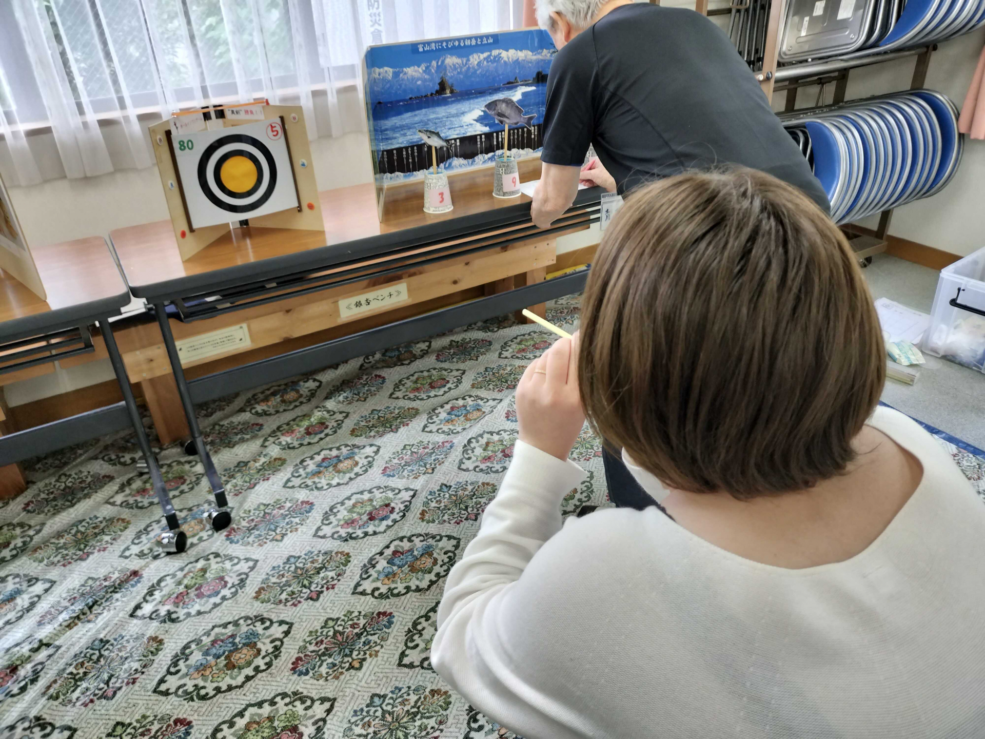 吹き矢の的も手作りです。