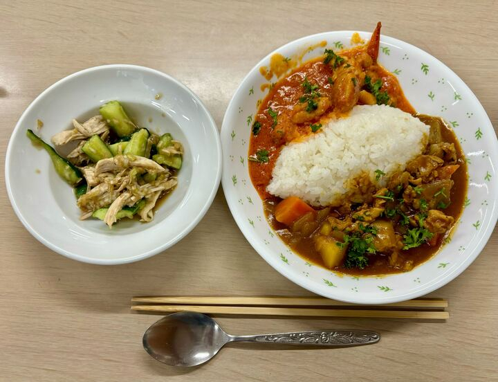 今回のメニューは「ポークカレーとキーマカレー」「蒸し鶏ときゅうりのネギだれ和え」でした☆彡