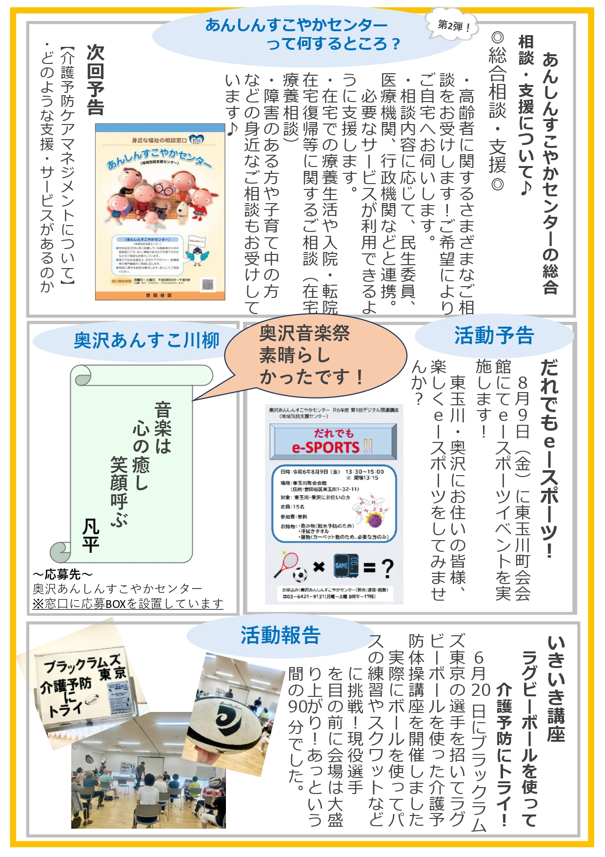 活動報告させていただいた、いきいき講座の特集・だれでもe-SPORTS!!の予告も掲載☆