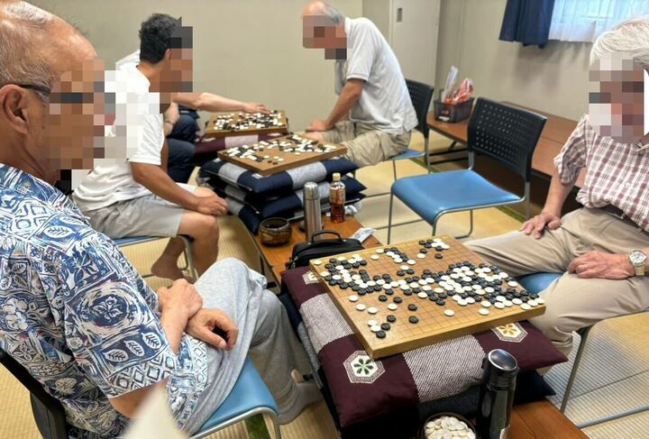 「囲碁」では、男性6名で対戦中。みなさんかなり集中されていました。
