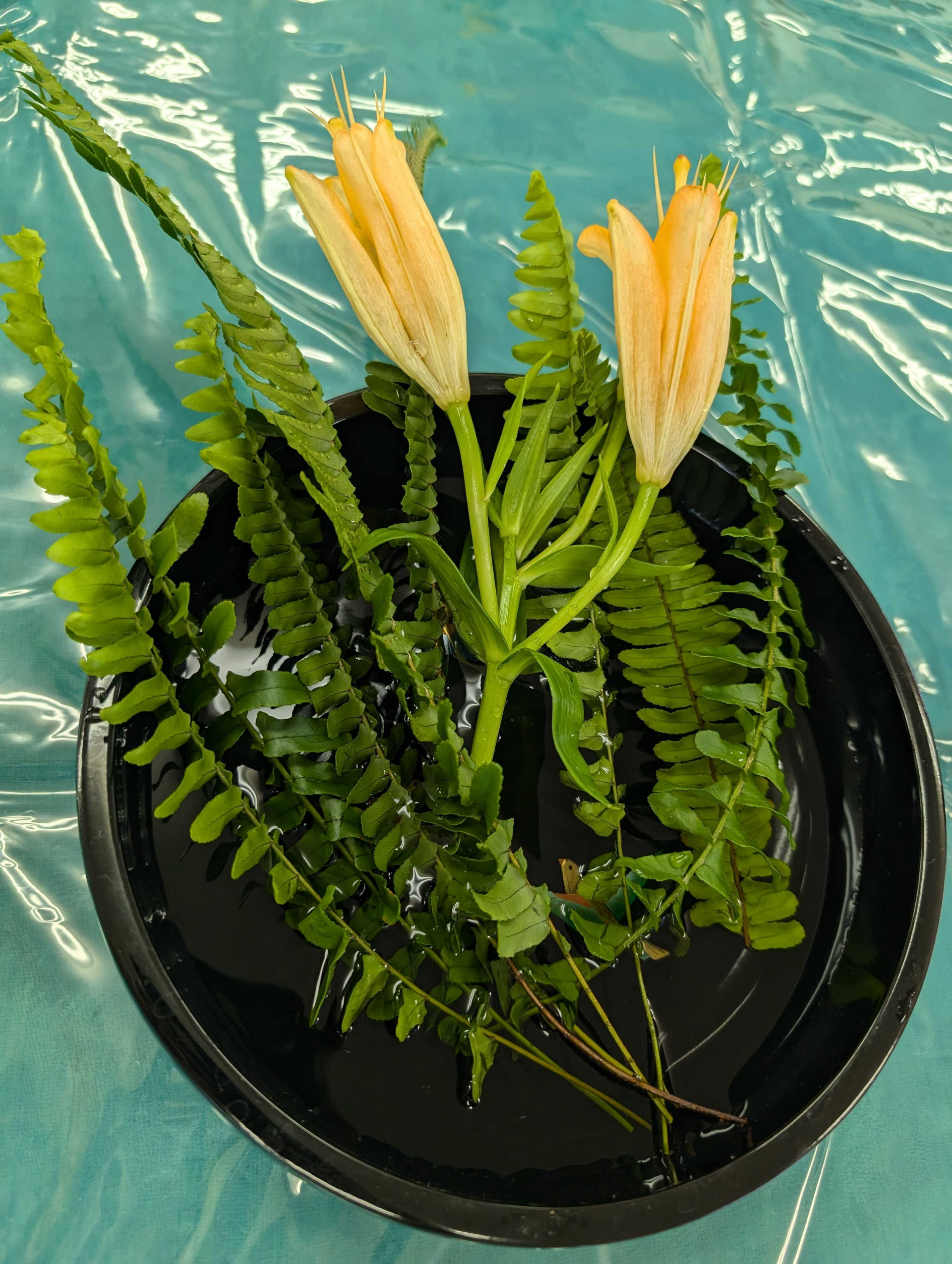 お話の間は世話人さんが活けてくださったお花で涼しさを感じます。
