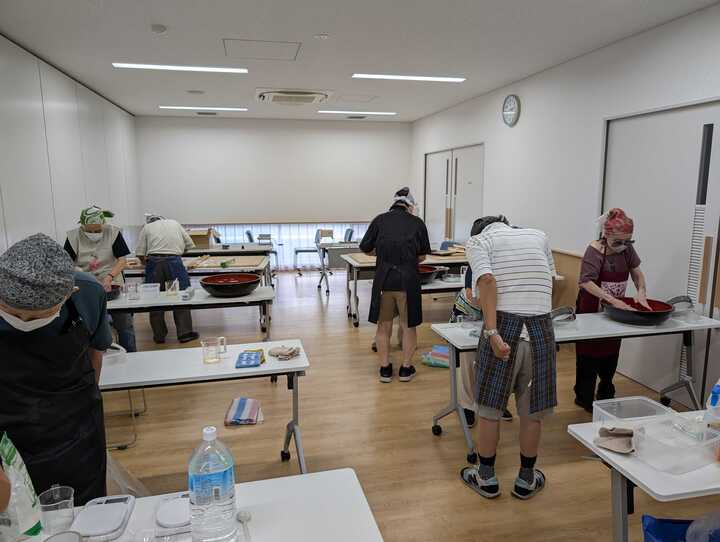 参加者の皆様お話しながら、笑顔も見られ、和気あいあいとそば作りを行っていました。