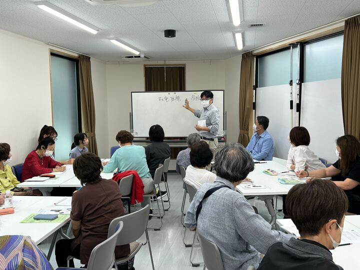 講座ではまず、自宅で診察や治療を受けることのイメージをしていただくため、地域のケアマネジャーから