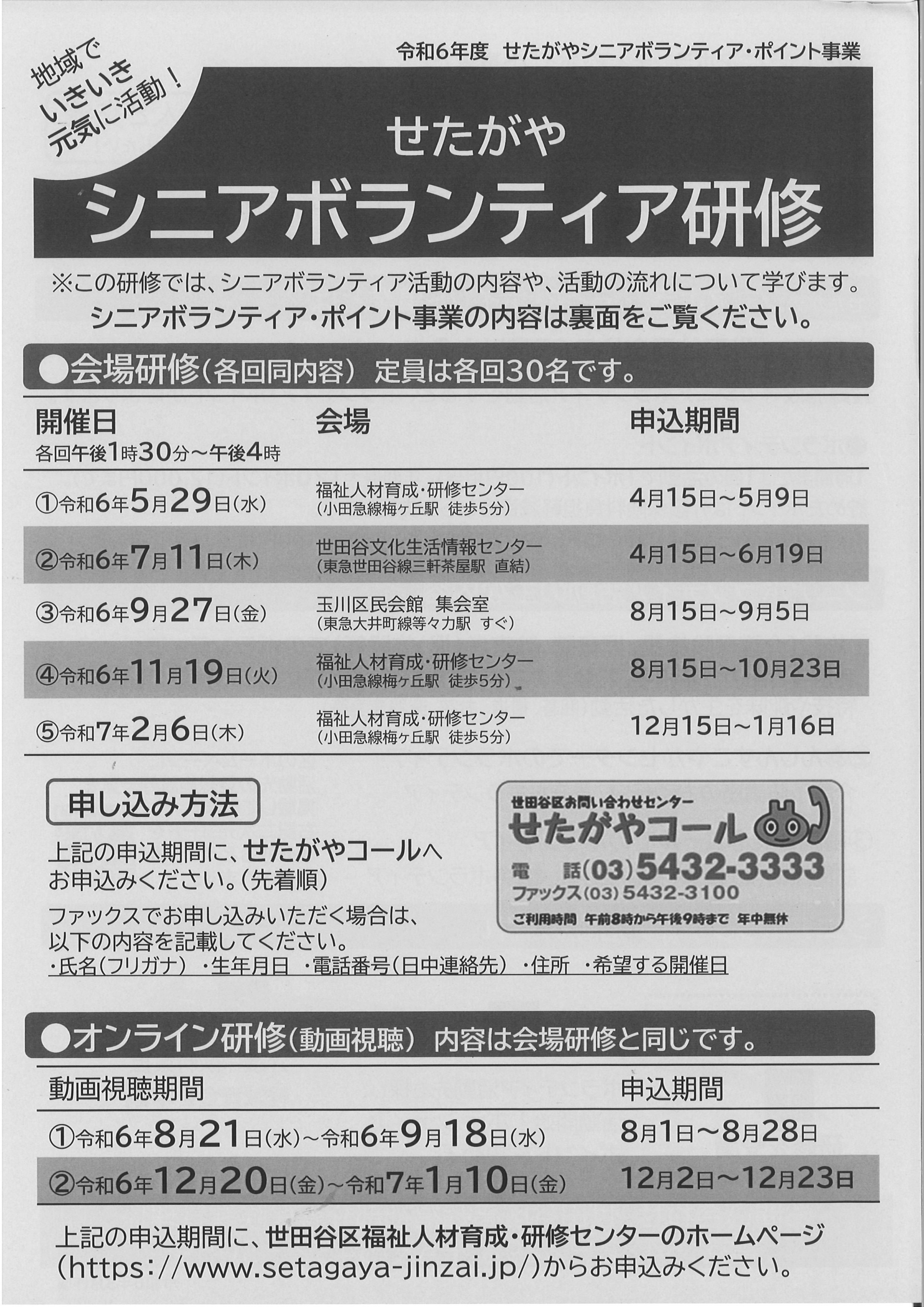 【奥沢包括】シニアボランティア研修受講してみませんか??