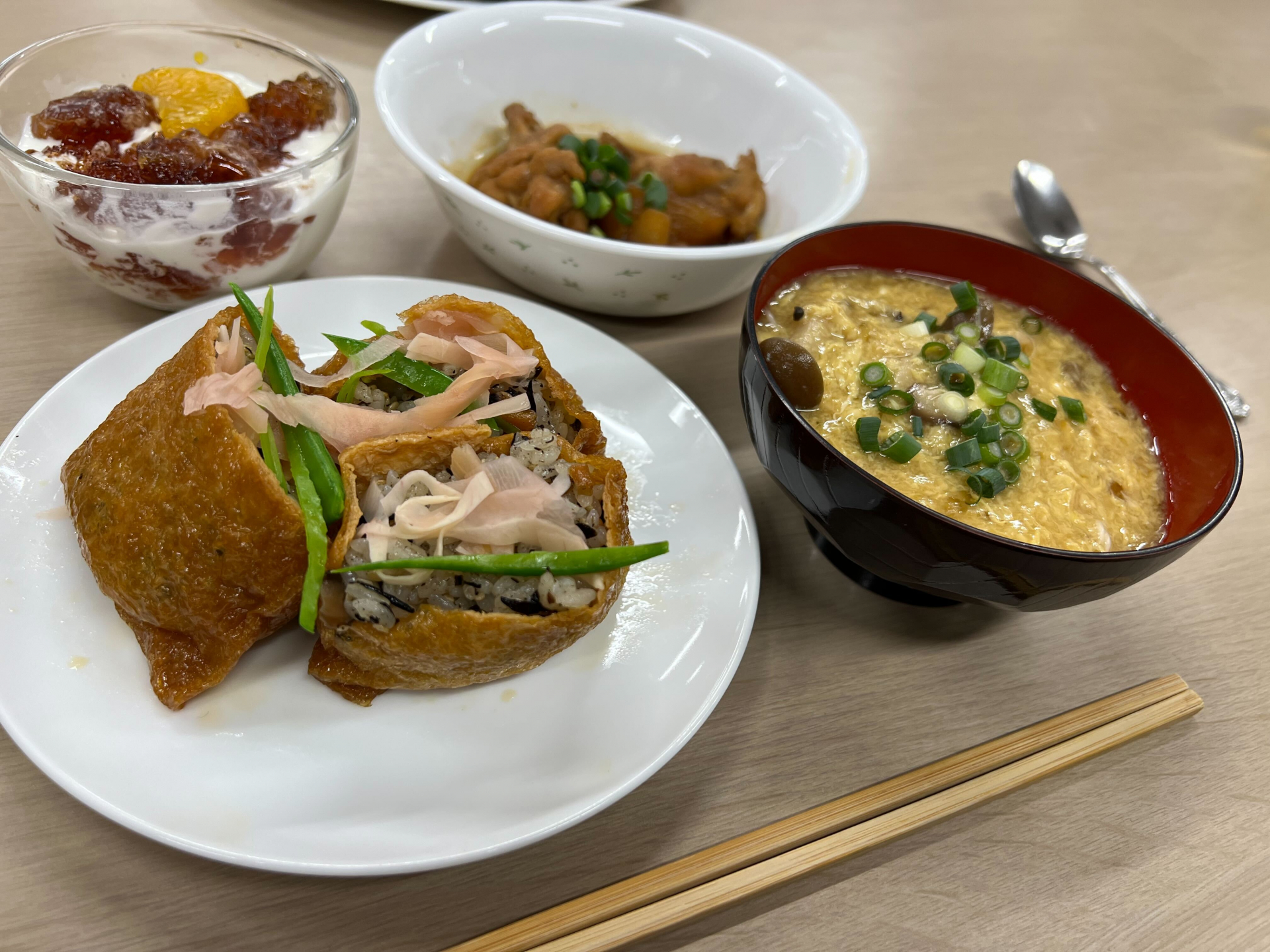 ●ヒジキ入りいなり寿司 ●大根と鳥の手羽先のポン酢炒め ●あんかけキノコ素麺 ●紅茶ゼリー&バニラアイス