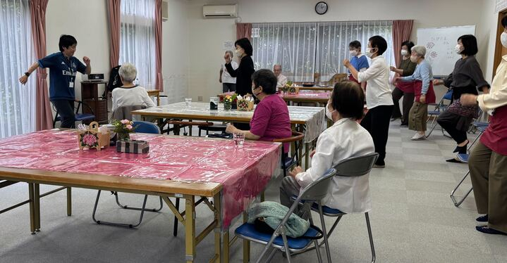 前半は軽体操を行っているのですが、今日は音楽に合わせたリズム体操♪