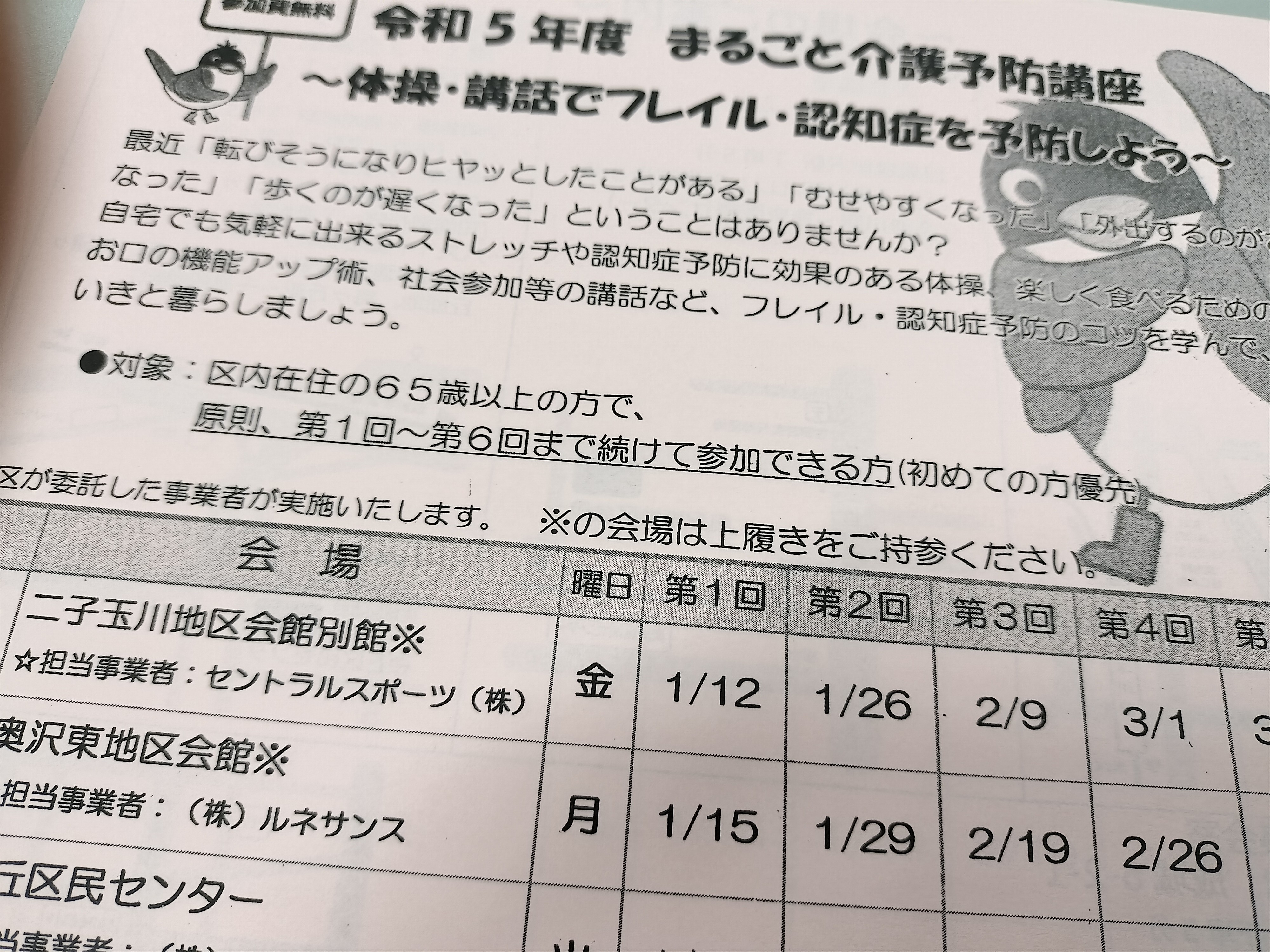 1月15日より、奥沢東地区会館でまるごと介護予防講座がはじまりました。