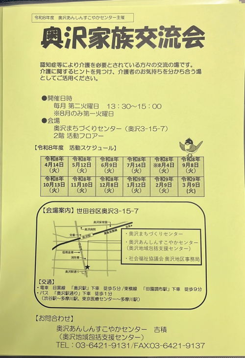 参加を希望される方は、奥沢あんしんすこやかセンターまでご連絡ください。