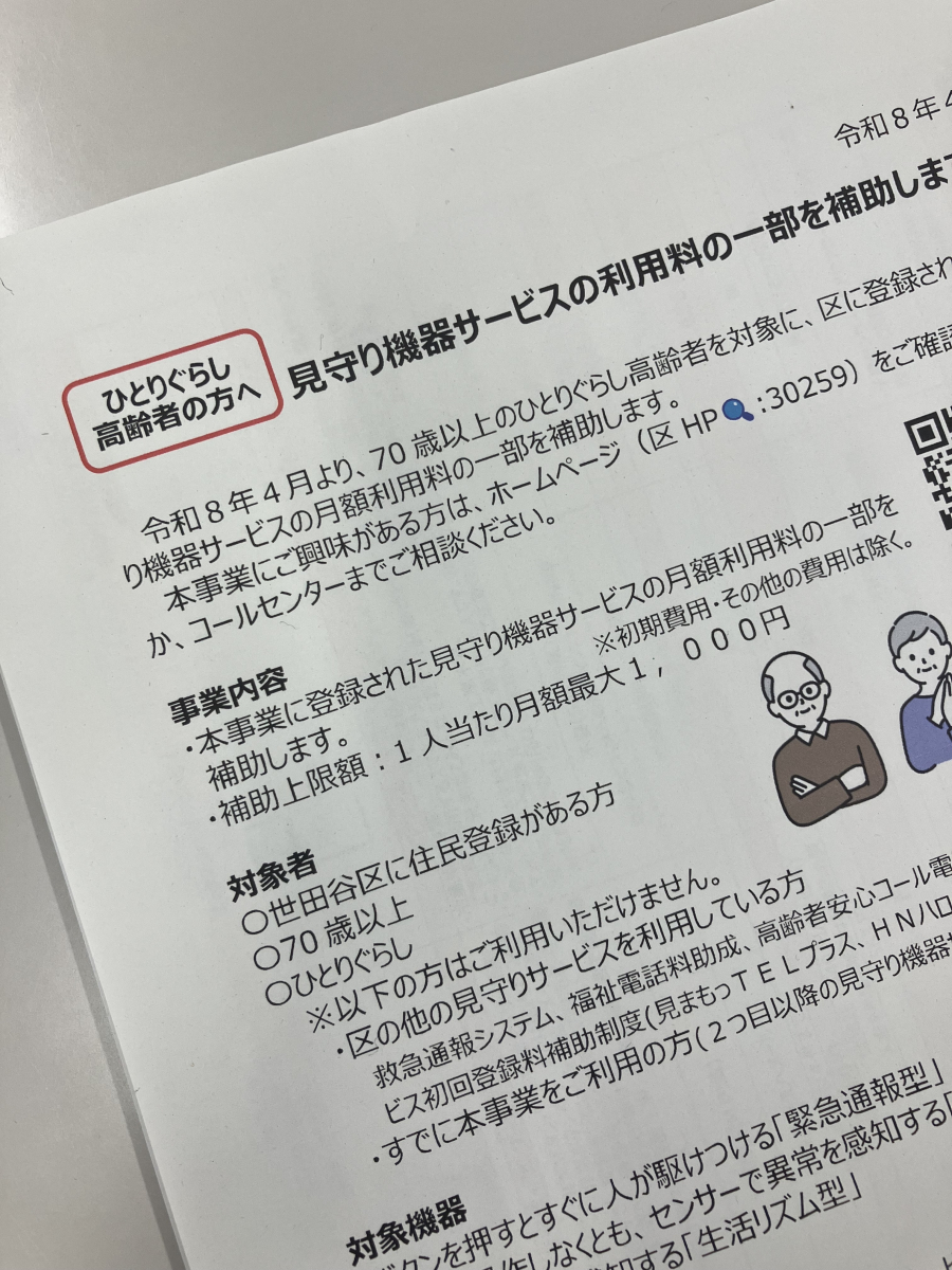 【奥沢包括】世田谷区見守り機器サービス(利用料一部補助)について