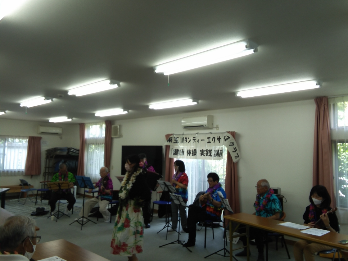 昼食後は演奏会とフラダンス♪私も少し躍らせていただきました。