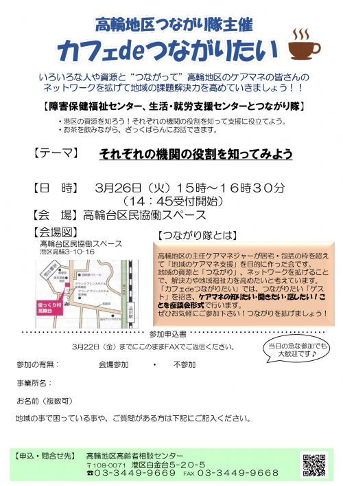 2024.09.26 【白金包括】筋力アップでロコモ予防!に参加してみませんか? お知らせ 2024.09.22 【白金包括】介護予防総合センターラクっちゃにて動きやすいからだづくりについての研修に参加してまいりました。 活動報告 2024.09.21 【白金包括】白金いきいきプラザにてセルフチェック会が開催されました。 活動報告 2024.09.21 【白金包括】三田のちょっといいところ~聖坂~ お知らせ 2024.09.18 【白金包括】介護家族サポーター養成講座を募集しています! お知らせ 2024.09.16 【白金包括】9月18日(水)みんなとオレンジカフェでお茶会が開催されます! お知らせ 2024.09.15 【白金包括】9月20日(金)開催予定!「みんなとオレンジカフェ」のお知らせです! お知らせ 2024.09.15 【白金包括】三田地区のちょっといいところ~三田台公園~ お知らせ 2024.09.06 【白金包括】三田のちょっといいところ~魚籃坂~ お知らせ 2024.09.05 【白金包括】9月の高輪地区みんなで語ろう会(介護家族のつどい)を開催します お知らせ 2024.09.05 【白金包括】セルフチェック会in高輪、開催報告 活動報告 2024.08.31 【白金包括】三田地区のちょっといいところ~潮見坂~ お知らせ 2024.08.27 【白金包括】9/1開催!『白金台どんぐり児童遊園納涼盆踊り大会』に参加します! お知らせ 2024.08.27 【白金包括】医療職基礎研修会のご報告です。 活動報告 2024.08.26 【白金包括】第2回目の「地域づくりによる介護予防研修」に参加してまいりました。 活動報告 1 … 24 25 26 27 28 … 42