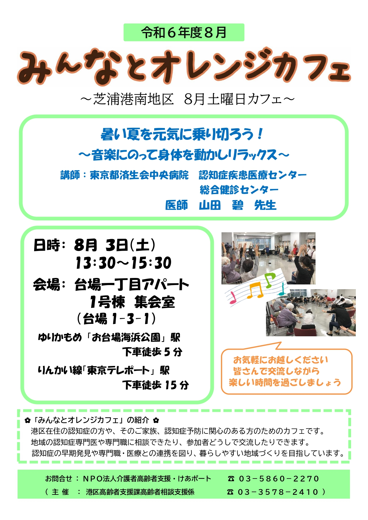 港区では、毎月みんなとオレンジカフェを定例開催しておりますが、8月はお休みになります。