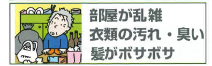 「部屋が乱雑、衣類の汚れ・臭い、髪がぼさぼさ」といったことについてお話しします。