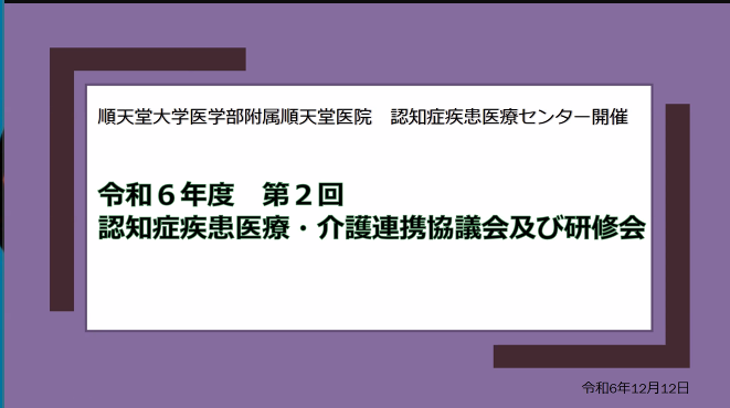 12月12日(木)に、第2回認知症疾患医療・介護連携協議会及び研修会に参加させていただきました。