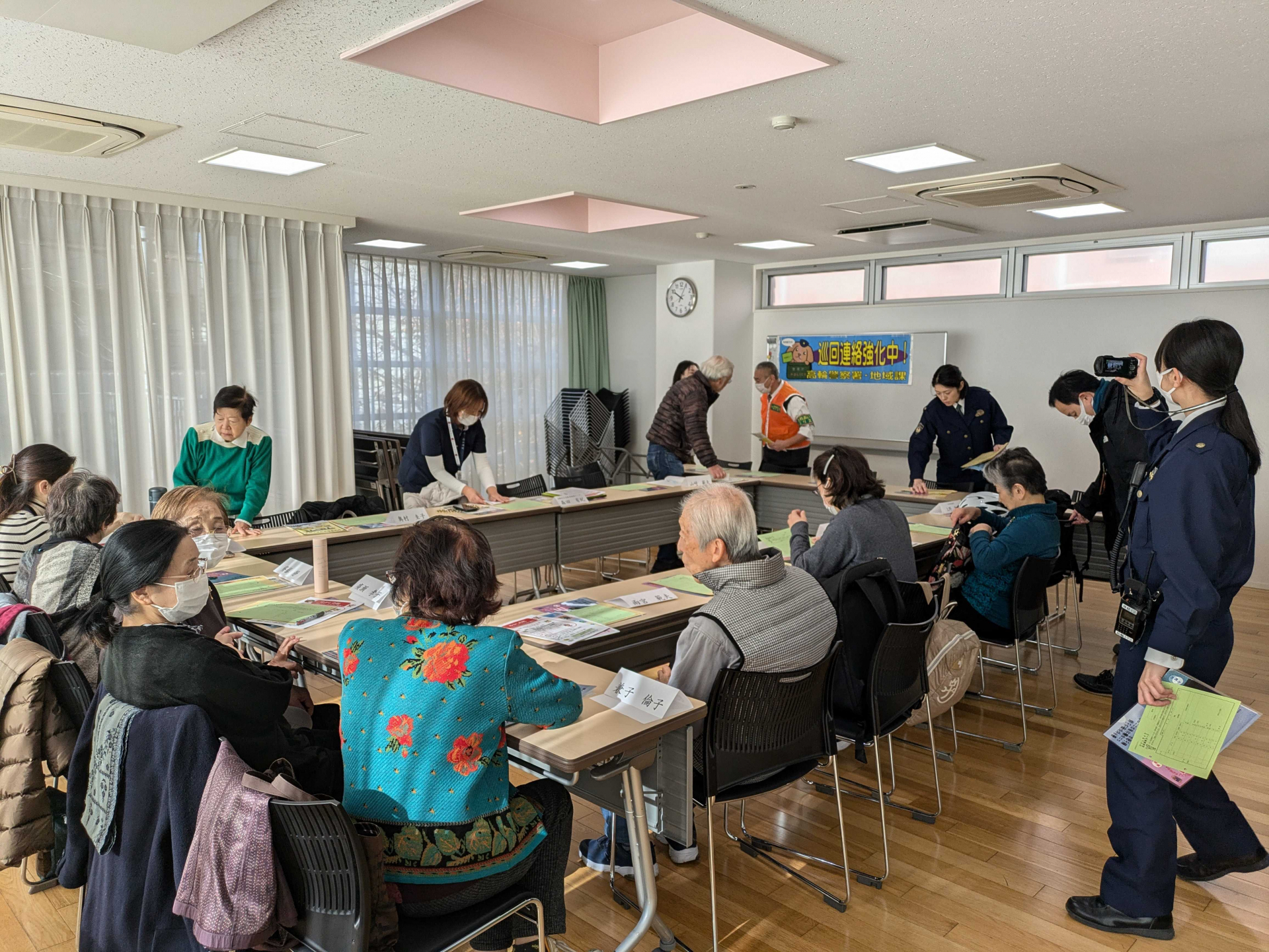 『けいしちょう巡回連絡カード』と『詐欺予防講話』。