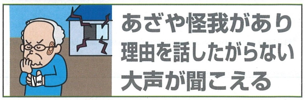 今回は「あざや怪我があり理由を話したがらない・大声が聞こえる」についてです。