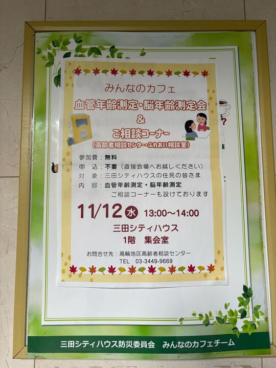 「みんなのカフェ」にて血管年齢測定&脳年齢測定会を行いました!