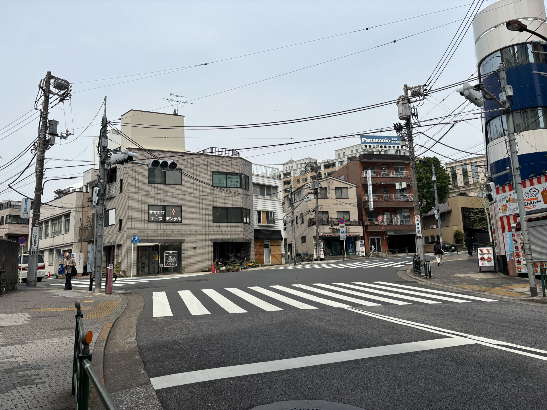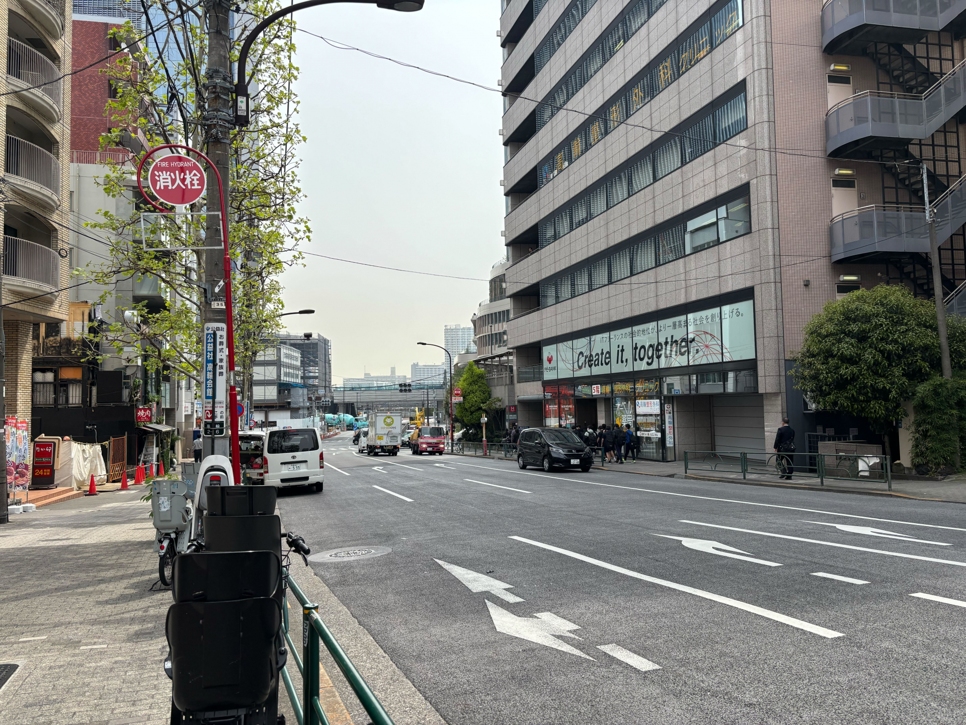 第一京浜道路にぶつかり、人も多くとても賑やかに。その先は高輪ゲートウェイ駅となっています。