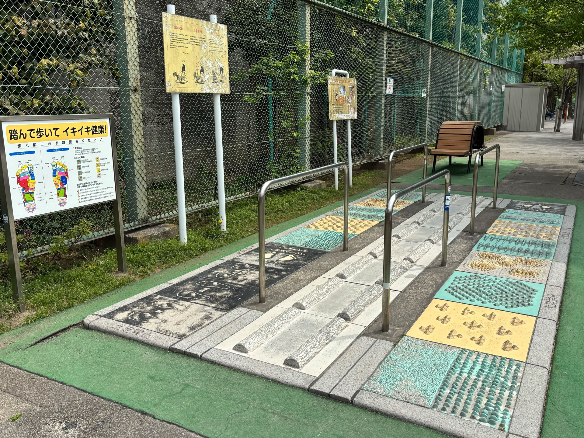 また、公園の入り口には足つぼマッサージの健康遊具があり、子どもから大人まで楽しめる公園です(^^)