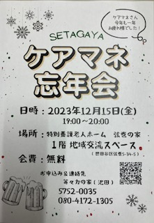 【等々力の家居宅】ケアマネ忘年会のお知らせ