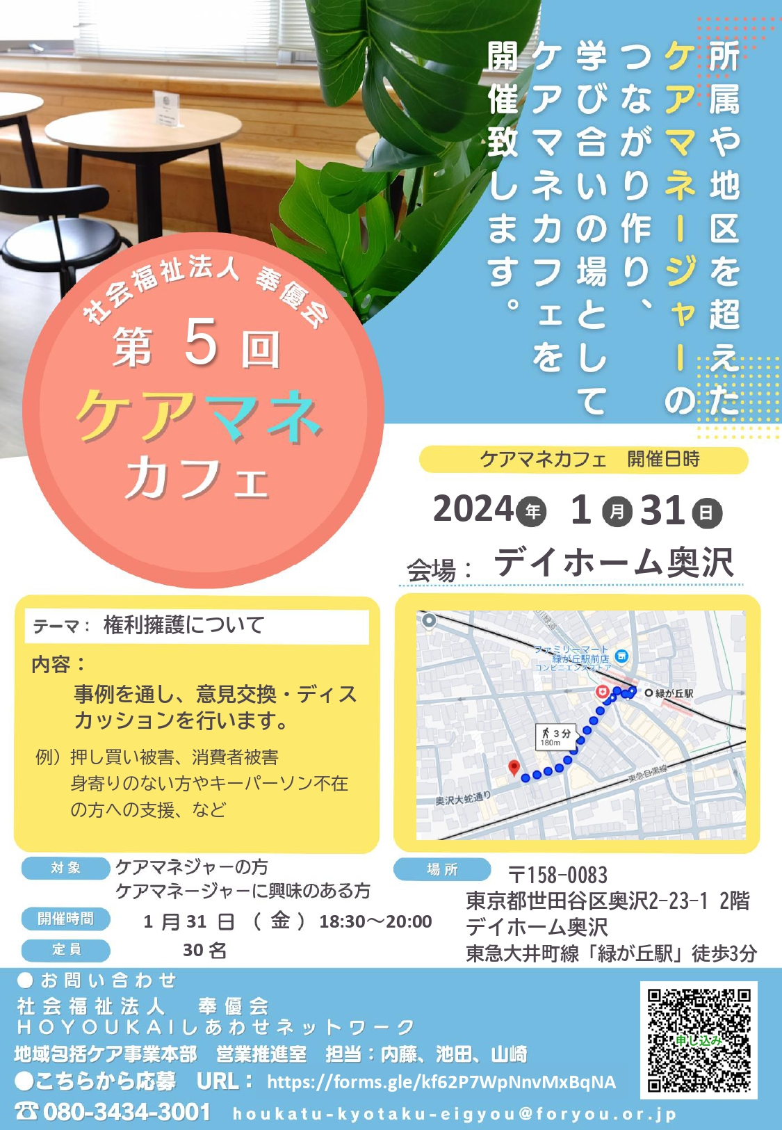 1月31日(金)にデイホーム奥沢にて、第5回目のケアマネカフェが開催されます。