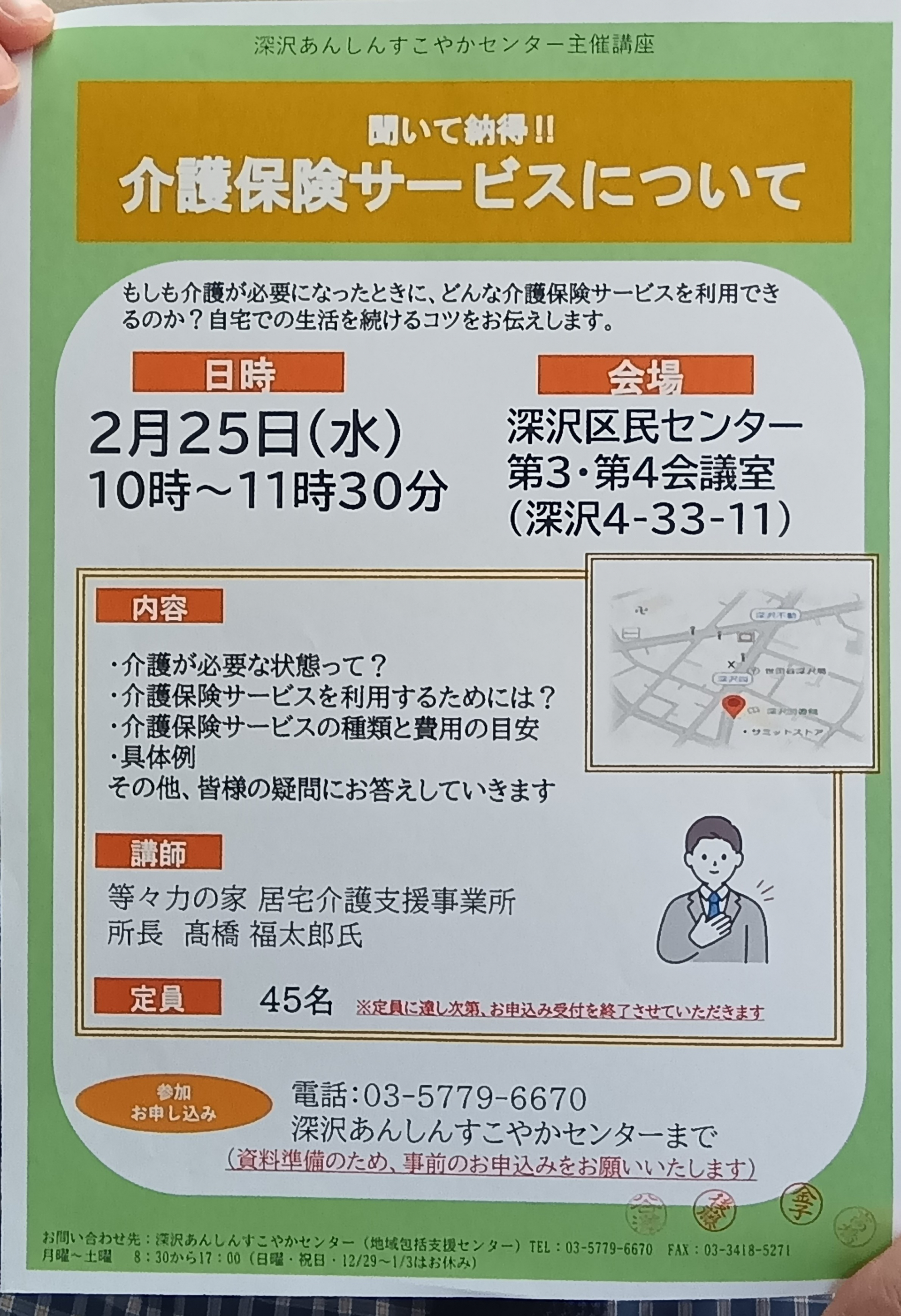 お申し込みは深沢あんしんすこやかセンター 03-5779-6670 までお電話ください。