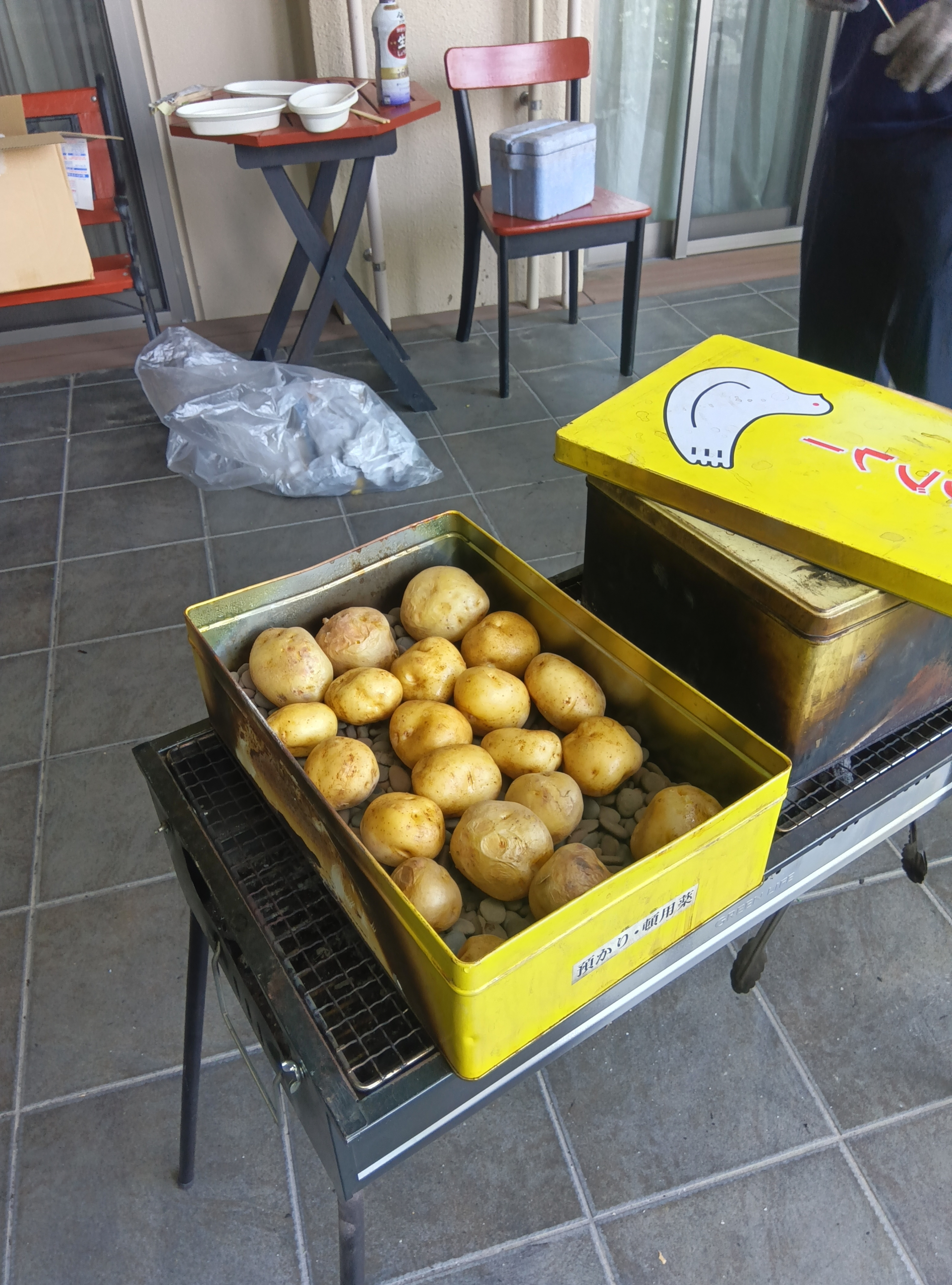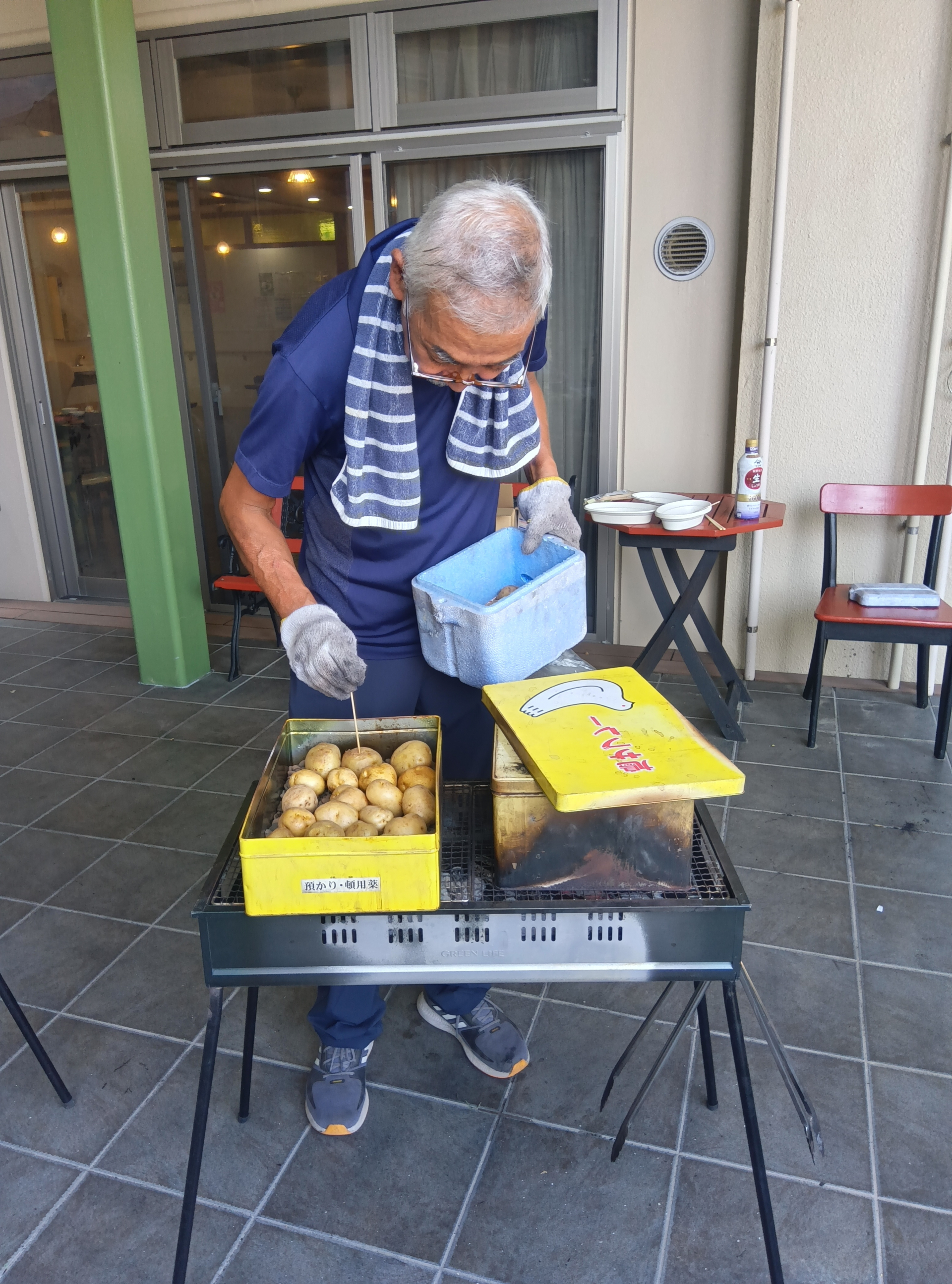 9月とは言えまだまだ暑いこの日、職員による炭火焼のトウモロコシと石焼のジャガイモが
