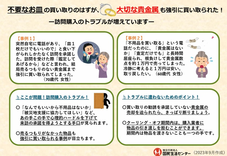 先日、訪問購入によるトラブル未遂があったということを伺いました。国民生活センターにも注意喚起の案内が掲載されていたので