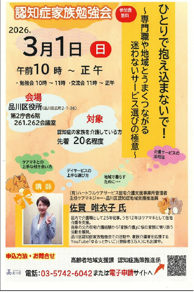 認知症の方を介護されているご家族に向けた勉強会が開催されます。