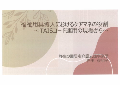 2025.10.23 【弥生の園居宅】家族介護教室「難聴と認知症~耳からはじめる健康・きこえと難聴そして補聴器の話~」 居宅介護支援事業所 2025.10.22 【弥生の園居宅】おもてなし玄関の季節の装飾★ 居宅介護支援事業所 2025.10.22 【弥生の園居宅】事例研究発表会 予選会出場 居宅介護支援事業所 2025.10.20 (弥生の園居宅)他事業所との事例検討会 活動報告(IN) 2025.10.14 【弥生の園居宅】94歳のお誕生日おめでとうございます♪ 居宅介護支援事業所 2025.10.09 令和7年度優っくり屋台村のご案内 居宅介護支援事業所 2025.10.09 【弥生の園居宅】家族介護教室「難聴と認知症」のお知らせ 居宅介護支援事業所 2025.09.25 【弥生の園居宅】中野区:令和7年度『物忘れ検診』が始まりました お知らせ 2025.09.20 (弥生の園居宅)2025年RUN伴+中野の日 活動報告 2025.09.11 【弥生の園居宅】RUN伴+なかの2025は9月20(土)です♪ 居宅介護支援事業所 2025.09.05 【弥生の園居宅】ひがしラウンジ★ひがし健康プラザ 居宅介護支援事業所 2025.08.27 【弥生の園居宅】換気をしましょう! 居宅介護支援事業所 2025.08.23 (弥生の園居宅)川島商店街夜市 活動報告 2025.08.22 【弥生の園居宅】川島商店街【川島夜店市】開催は今週末です! 居宅介護支援事業所 2025.08.18 弥生の園居宅「ケアマネはカフェにいる」カフェ 第1回ミニ講座ご案内 お知らせ 1 2 3 … 12