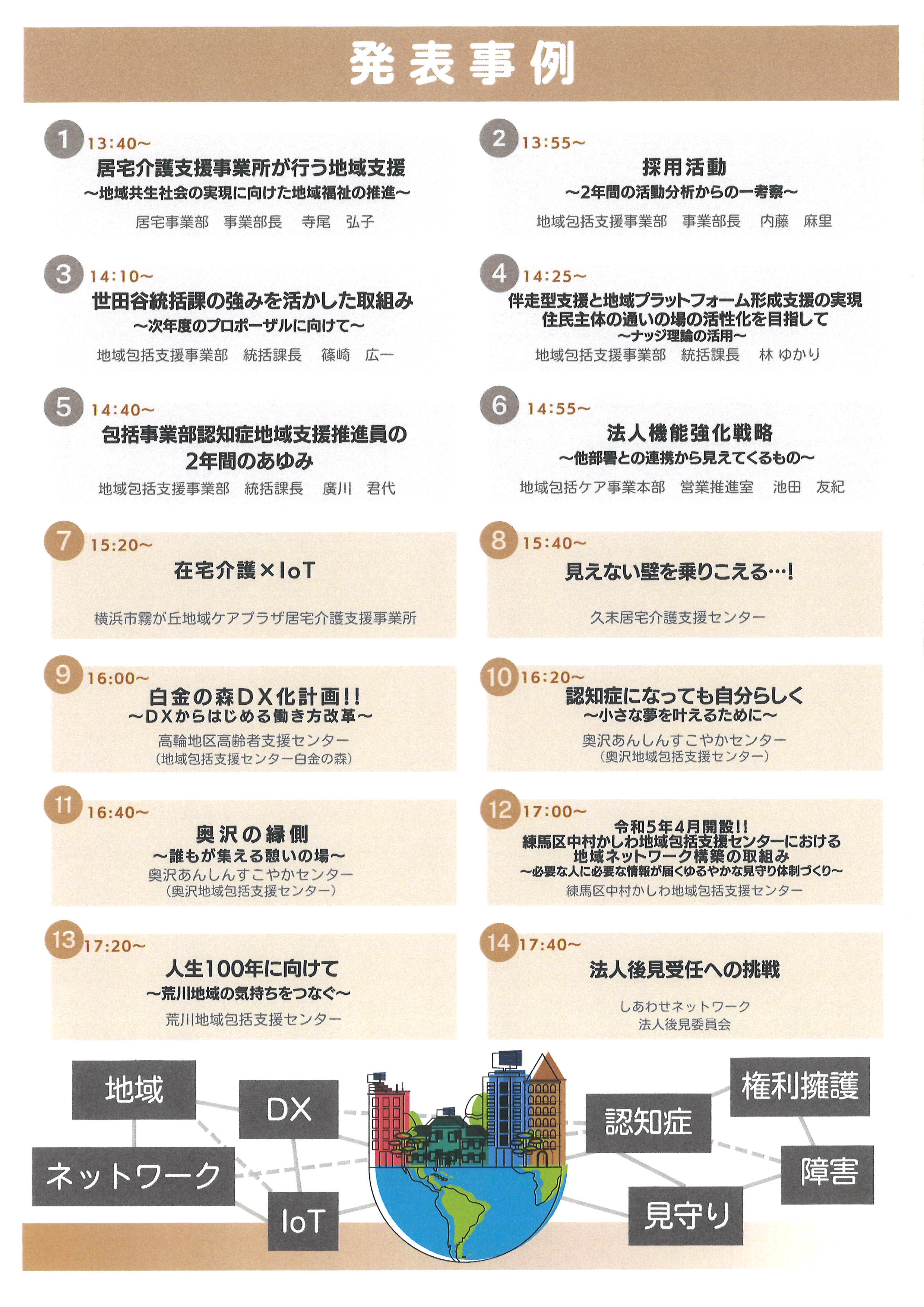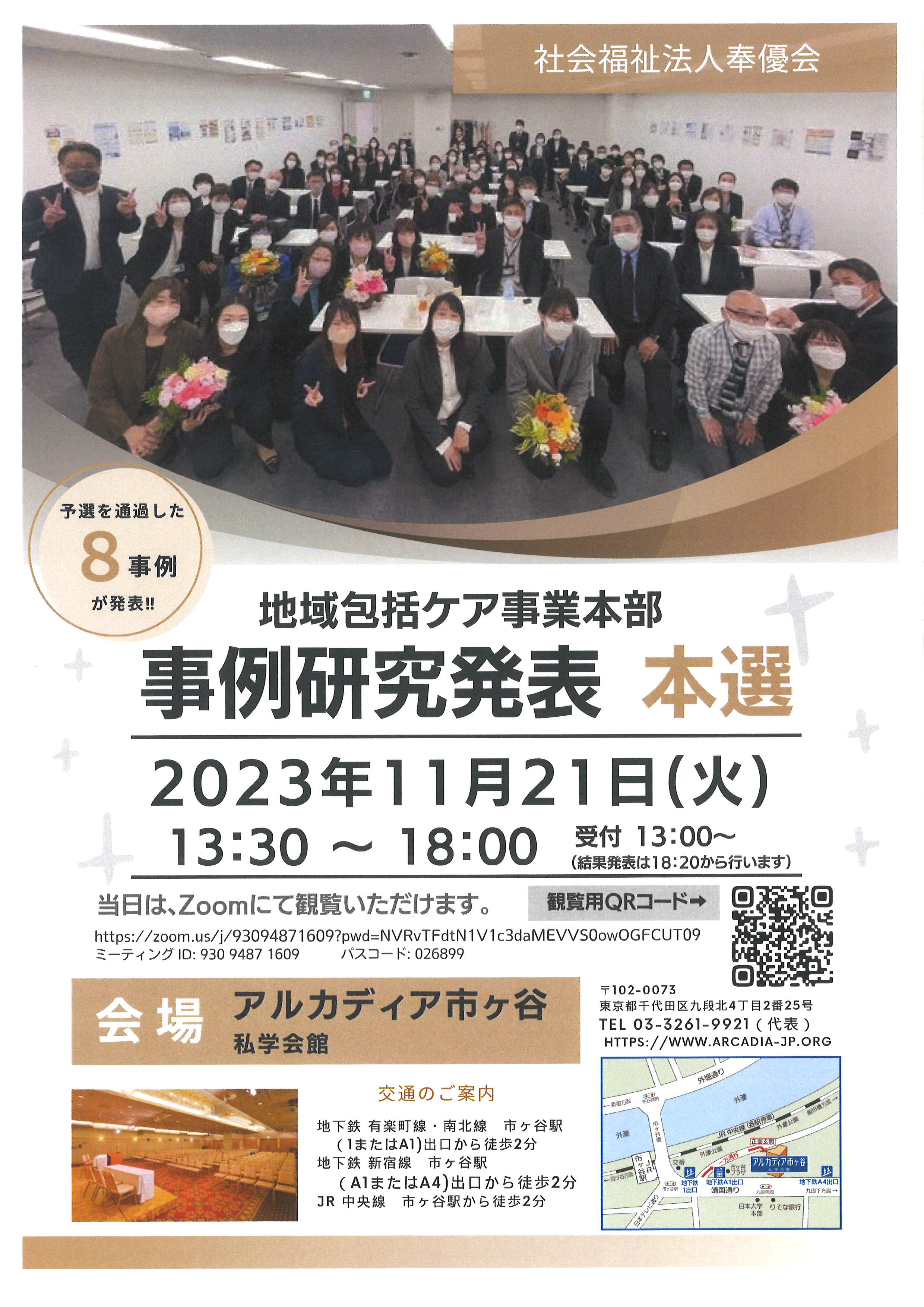 2023.11.14 お知らせ 【弥生の園居宅】2023年事例研究発表会のお知らせ Tweet シェアする 今年も事例研究発表会が開催されます。 これまで地域包括ケア事業本部の全事業所で事例研究を発表した中から 今回8事例が選ばれました。その本選が開催されますので、ご案内いたします 前の記事 2023.11.15 お知らせ インフルエンザが流行中です【弥生の園居宅】 次の記事 2023.11.13 お知らせ 【弥生の園居宅】介護保険でお困りの方 一覧へ戻る