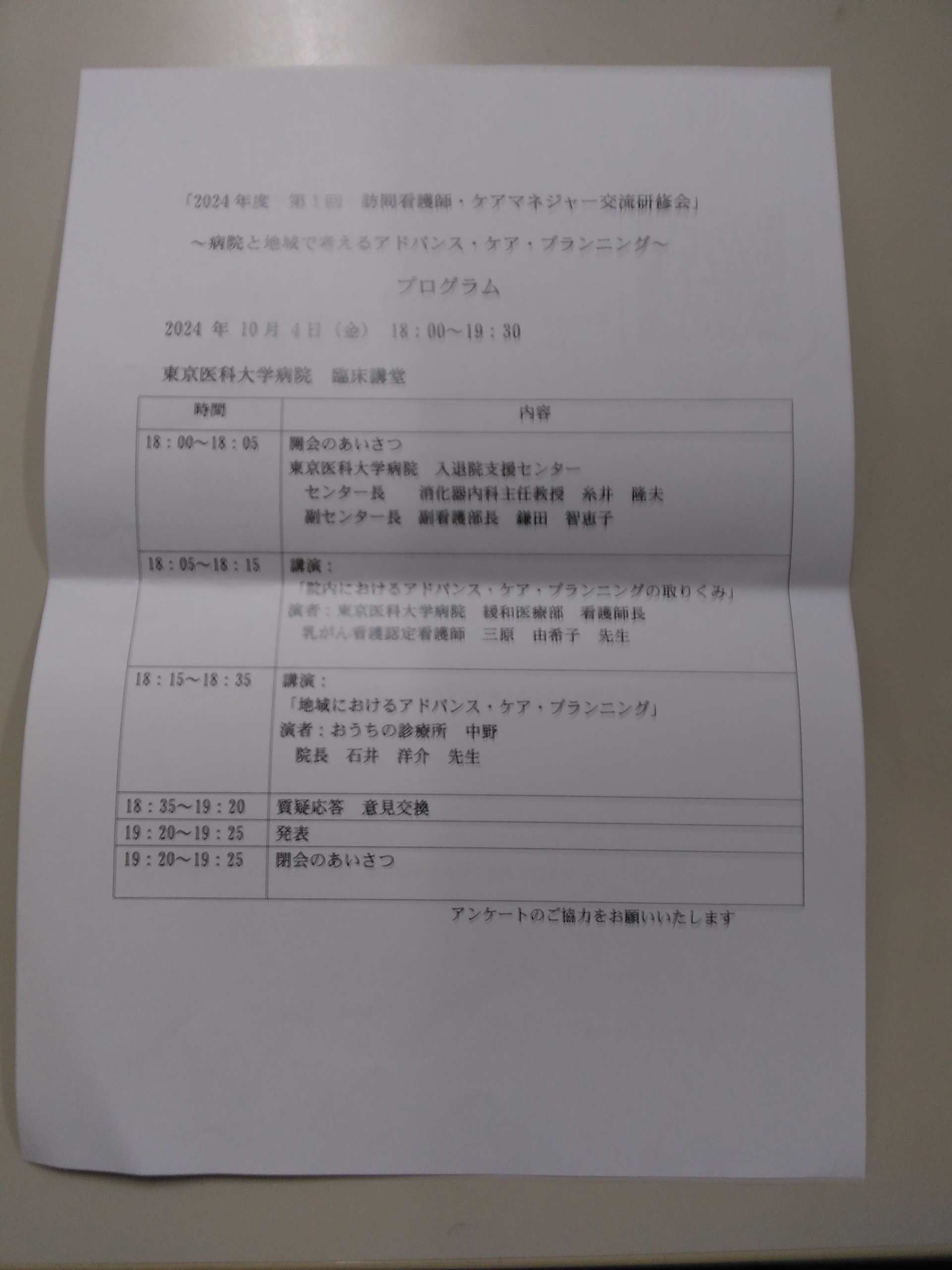 【弥生の園居宅】東京医科大学病院「訪問看護師・ケアマネジャー交流研修会」