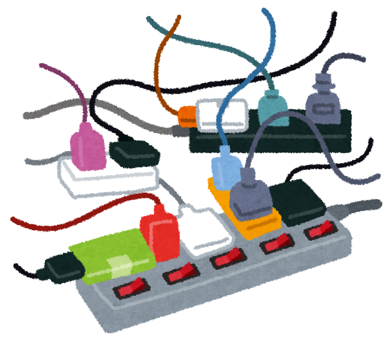 - 配線器具には使用可能な消費電力(定格消費電力)が定められており、それを超えて使用すると火災につながる恐れがあります。